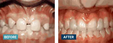 Sometimes braces are not needed to get noticeable improvements in tooth alignment. This patient was first seen at age seven for crowding of the lower permanent teeth. A procedure was performed to reduce the width of the adjacent baby teeth and the permanent incisors aligned on their own in nine months.