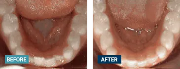 Patient sucked her thumb as a young child. She started treatment at age 13. She had braces and a special appliance — called a crib — to retrain the tongue, for 28 months. Now she can bite the lettuce out of a sandwich.