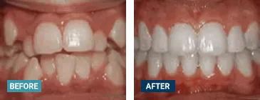 Patient was bothered by the spaces between his teeth. Braces closed the spaces and gave him an ideal bite in 24 months. Special glued-in retainers help keep the spaces closed.